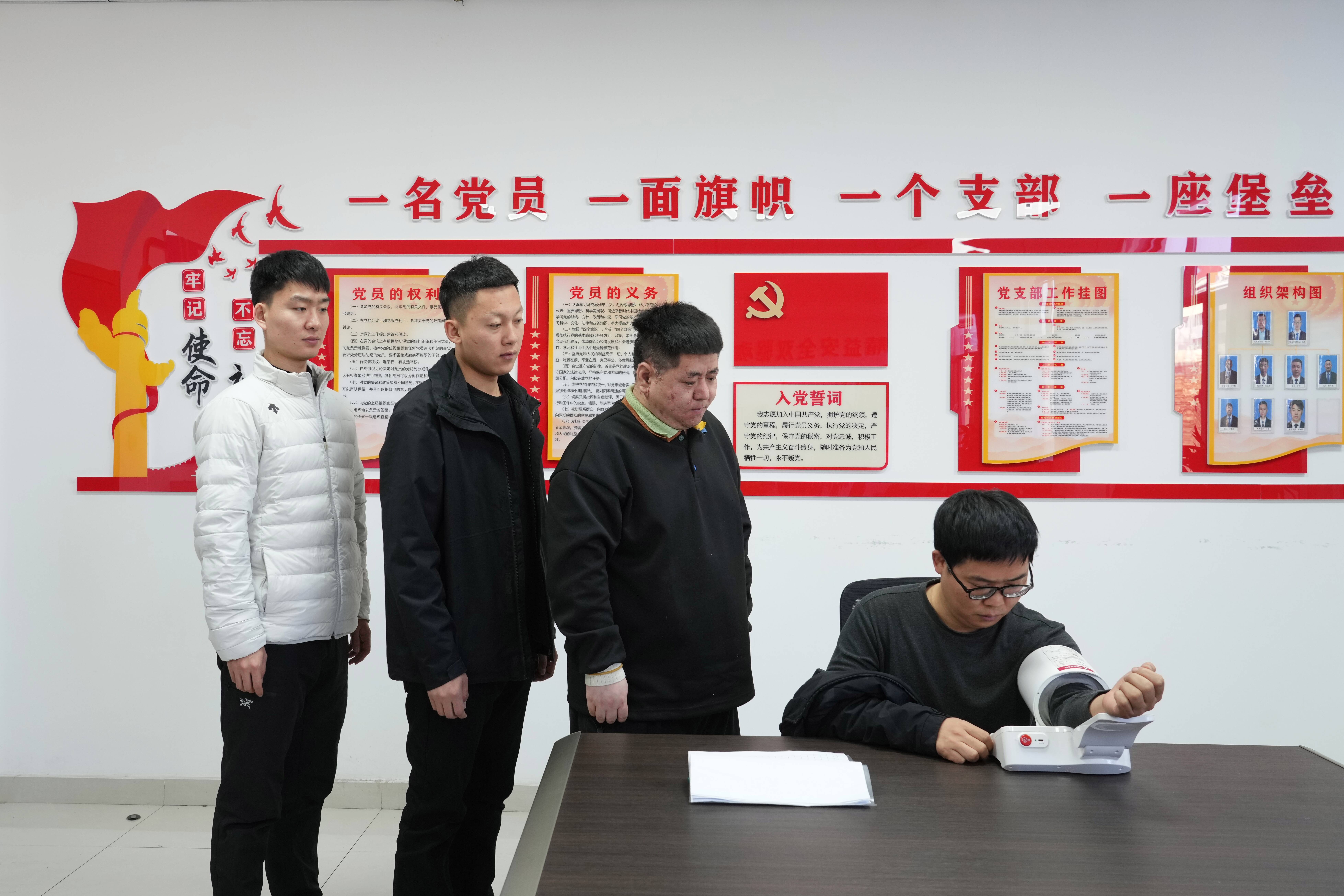 (双欣矿业基层工区职工正在班前测量血压)