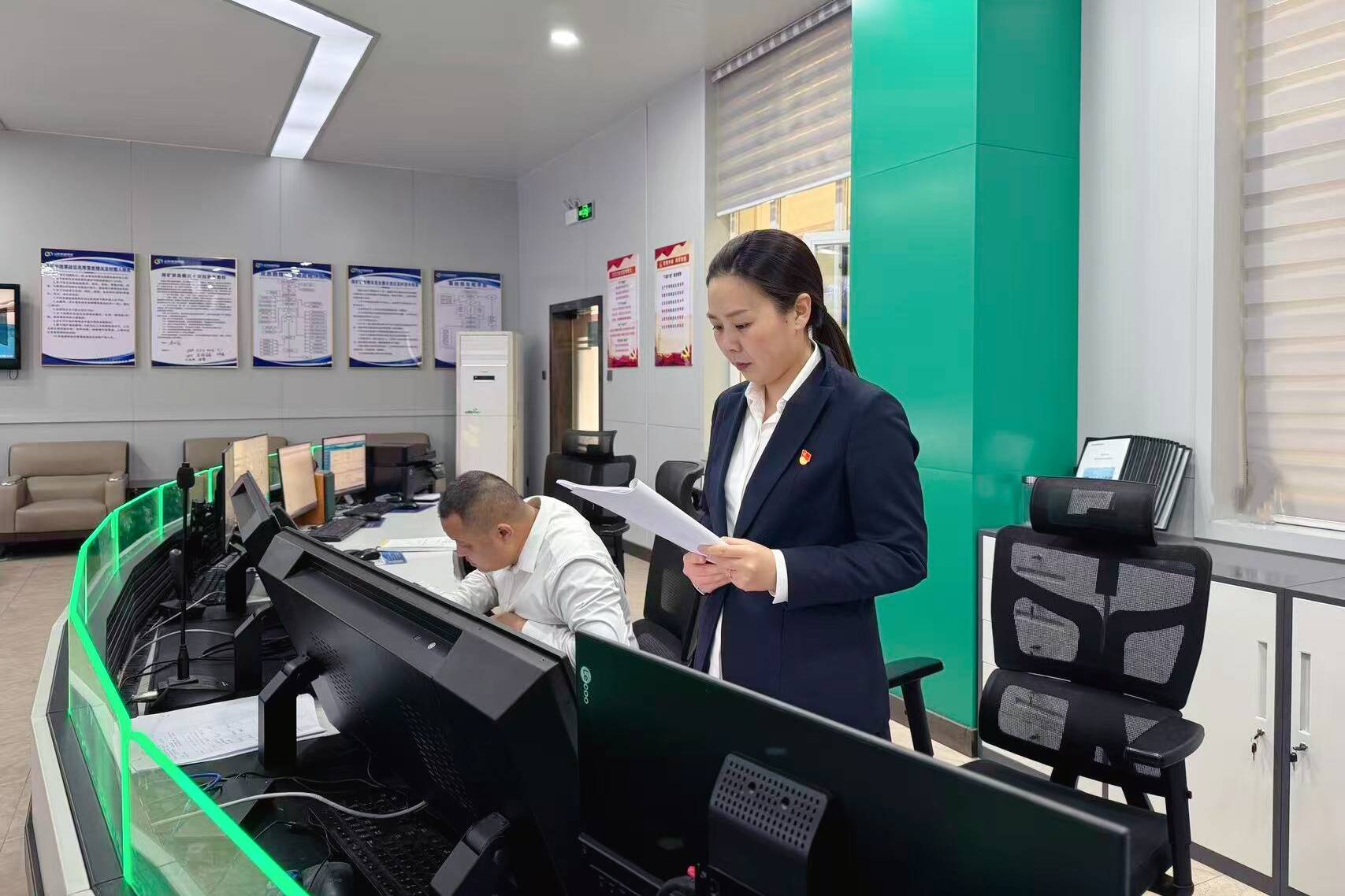 (双欣矿业纪检干事对党员干部入井记录进行核查)